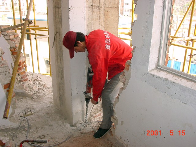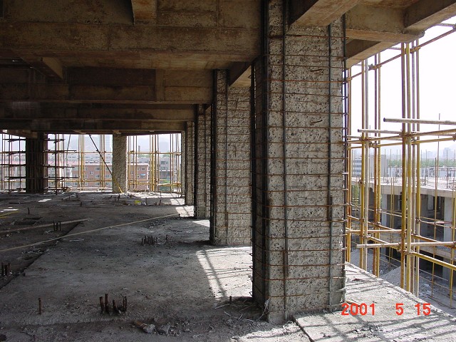 濟南嘉恒商務(wù)大廈建于1995年,中間因故停工,1999年繼續(xù)建設(shè),我單位對其主體結(jié)構(gòu)進(jìn)行了鑒定加固,采用化學(xué)植筋,加大截面加固框架柱進(jìn)行處理。