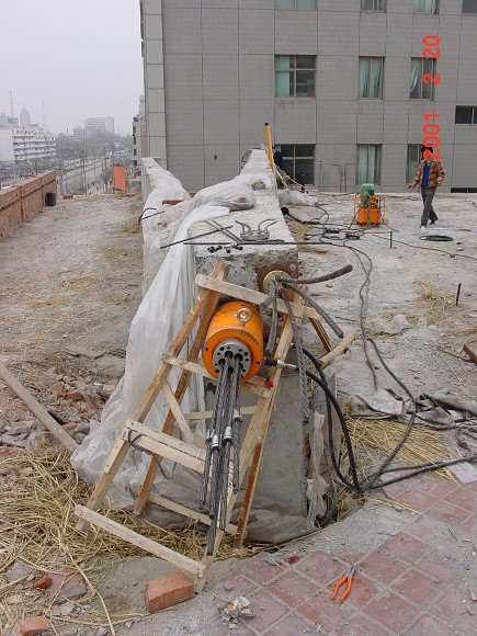 濟南勝利石油大廈,原辦公室改為大會議室,抽三根框架柱,采用上翻預(yù)應(yīng)力梁結(jié)合腹板柱空腹桁架轉(zhuǎn)換結(jié)構(gòu)進行加固改造處理,既滿足了安全要求,又滿足了使用功能的改變。