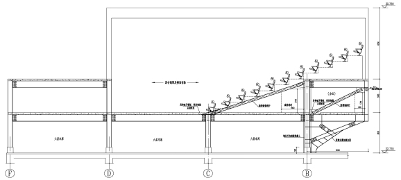 圖3 巨幕影廳鋼斜桿加固懸挑結(jié)構(gòu)剖面示意圖