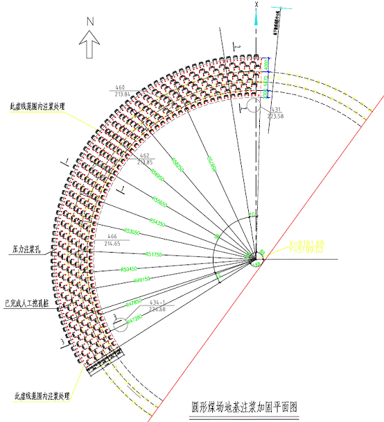 華能白楊河電廠2×300MW級以大代小供熱機(jī)組圓形煤場局部存在新近回填土體,對該場地進(jìn)行注漿加固處理。采用沖擊成孔,成孔過程中可以通過振動(dòng)擠壓使周圍土體密實(shí)同時(shí)防止塌孔,另外還可以避免由于泥漿護(hù)壁成孔造成的土體含水量增大從而影響注漿效果及泥漿滲透。經(jīng)過注漿加固處理后的地基滿足變形模量不小于18MPa。