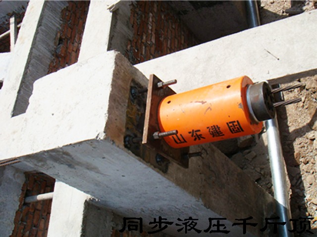綜合對比該工程重量小、整體性差和抗震性差的特點,決定采用具有移動平穩(wěn)、振動小、對軌道的不平整度適應(yīng)能力好等特點的滑動式整體平移技術(shù)。牽引系統(tǒng)采用PLC控制的同步液壓千斤頂,確保平移過程中的平穩(wěn)性和同步性。