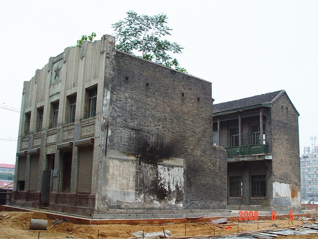 2008年3月,因經(jīng)二路拓寬改造,同時出于保護歷史建筑的需要,對該建筑實施平移保護,先向北平移11.8m,旋轉(zhuǎn)3.8度,再向東平移16.6m,建筑物平移到位后,再整體頂升0.4m。