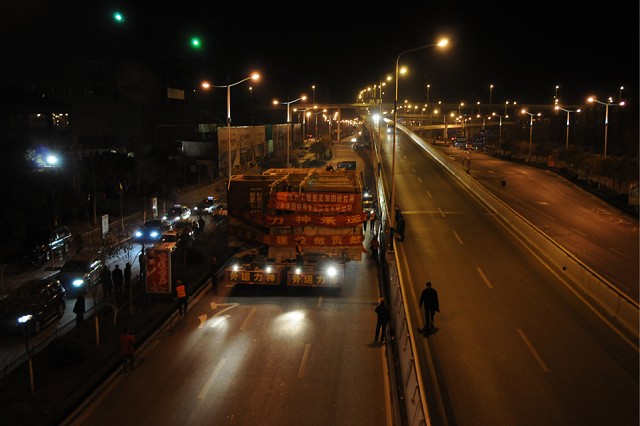 經(jīng)過(guò)整夜跋涉,清晨行進(jìn)在寬闊的經(jīng)十東路: