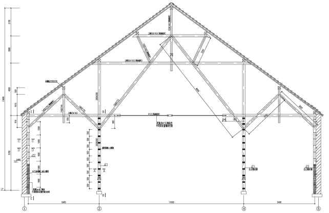 濟南成豐面粉廠位于濟南市天橋區(qū)成豐街北側(cè),由苗氏實業(yè)家于1921年創(chuàng)辦,至今已有90余年歷史。成豐面粉廠建成以后,由苗家出資鋪設(shè)了一條東西走向的街道,命名為“成豐街”,沿用至今。保留需加固的廠房亦建于1921年,系濟南市近代中西合璧的歷史優(yōu)秀建筑之一,建筑物南北山墻曲線形的山尖和墻飾線腳反映出巴洛克風(fēng)格。主體結(jié)構(gòu)為單層磚(石)結(jié)構(gòu),除北側(cè)山墻全部為清水磚墻外,其余三面維護墻1.67m標(biāo)高以下為毛石墻體,1.67m標(biāo)高以上為清水紅磚墻,即“以石墻為基,以磚墻為體”。毛石條形基礎(chǔ),木結(jié)構(gòu)屋蓋,屋頂掛粘土紅瓦(圖1),內(nèi)部承重結(jié)構(gòu)為9榀木架(圖2)。