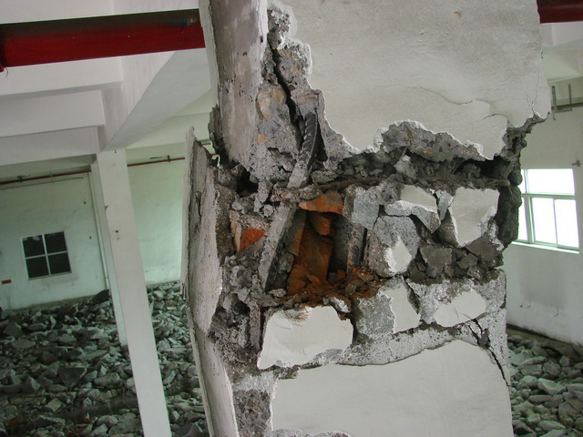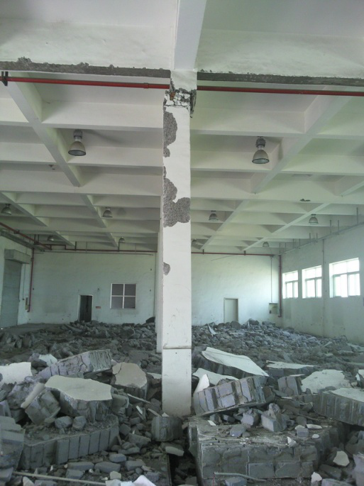 一層框架結(jié)構(gòu),主要原因是施工縫區(qū)域不密實、填有磚塊等,次要原因是墻體拆除時對該柱的擾動。