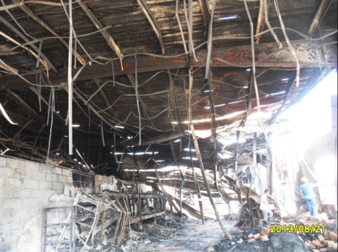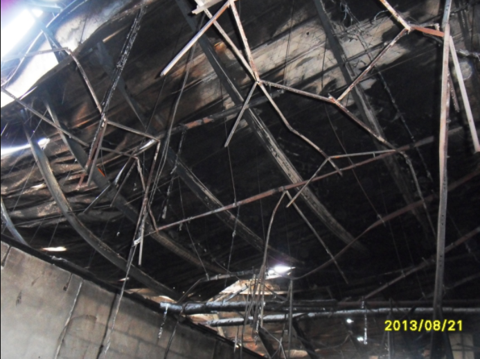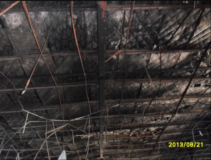 2013年08月17日上午9:15左右發(fā)生火災(zāi),當(dāng)天下午1:30左右火災(zāi)被消防隊員熄滅,起火原因尚不明確,主要可燃物為配件表層橡膠。