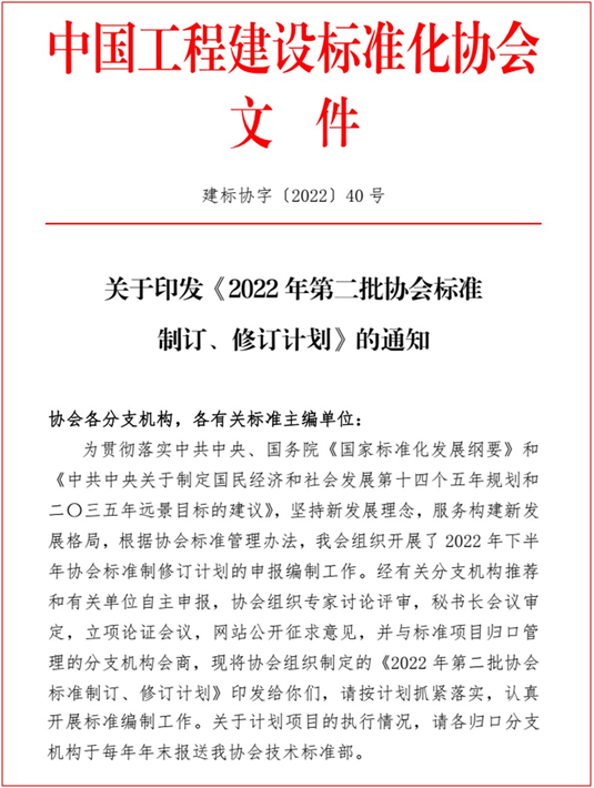 根據(jù)中國工程建設(shè)標(biāo)準(zhǔn)化協(xié)會(建標(biāo)協(xié)字〔2022〕40號)關(guān)于印發(fā)《2022年第二批協(xié)會標(biāo)準(zhǔn)制定、修訂計(jì)劃》的通知,協(xié)會標(biāo)準(zhǔn)《城市綜合管廊基坑支護(hù)技術(shù)規(guī)程》、《機(jī)械頂管穿越工程風(fēng)險(xiǎn)評價(jià)標(biāo)準(zhǔn)》、《基坑工程三維激光掃描應(yīng)用技術(shù)規(guī)程》、《既有建筑抗浮治理技術(shù)規(guī)程》已通過中國工程建設(shè)標(biāo)準(zhǔn)化協(xié)會審核并正式批準(zhǔn)立項(xiàng)。由山東建筑大學(xué)工程鑒定加固研究院有限公司啟動(dòng)四項(xiàng)標(biāo)準(zhǔn)的編制工作。